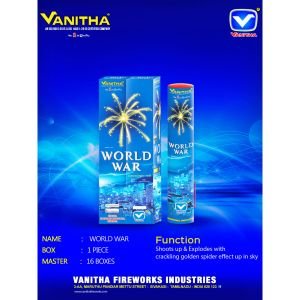 Celebrate Diwali with a bang of our 3.5 inch World War E. This firework is sure to light up your Diwali celebrations with its vibrant colors and loud bangs. It features a unique design that creates a beautiful display of red, green, yellow, and blue stars that will fill the night sky with a dazzling show. The World War E also produces loud bangs that will make your Diwali celebration even more exciting. Get ready for an unforgettable experience with this amazing firework.