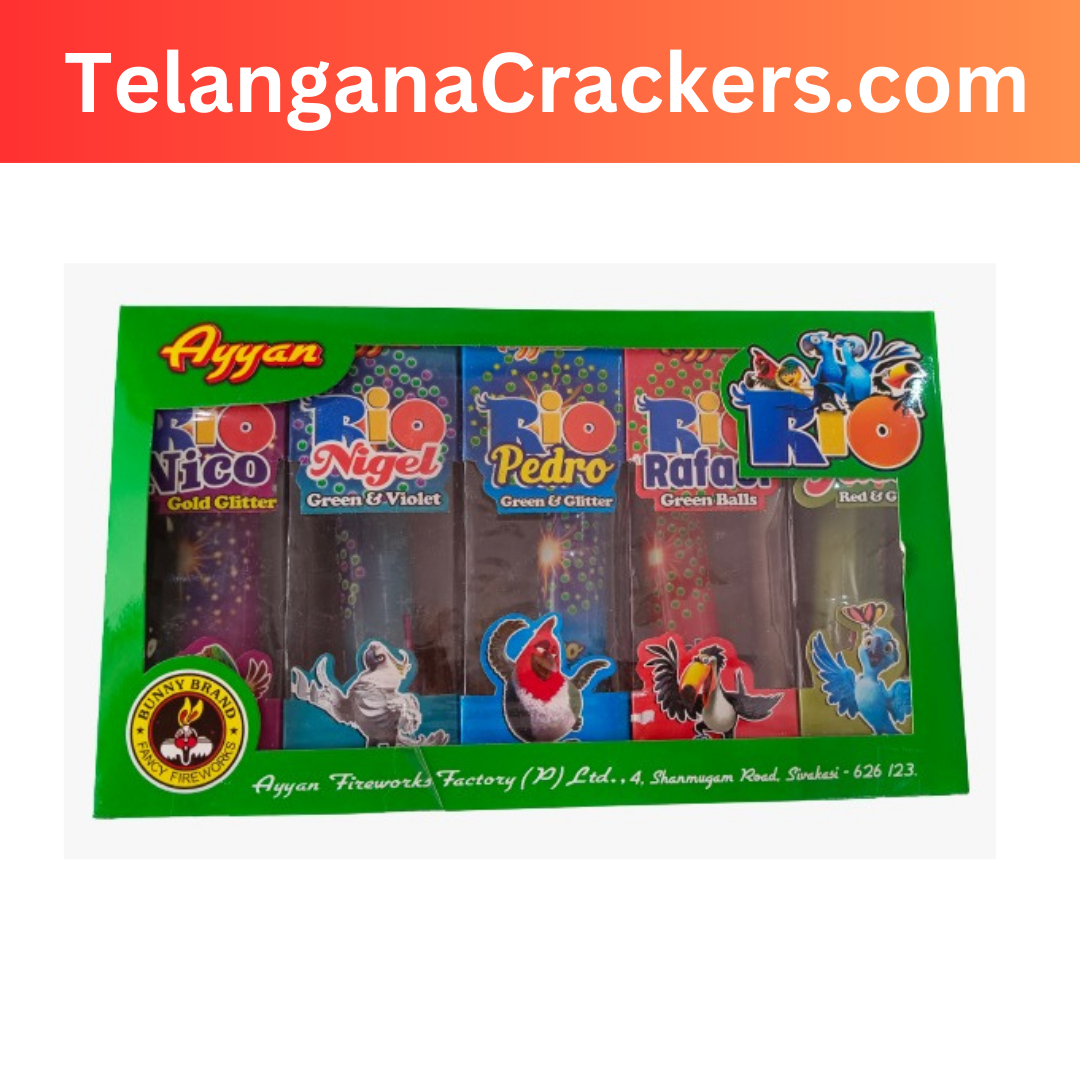 Rio 1.25 Inch 5 In 1 Pack from Ayyan Fireworks! This amazing firework is sure to light up your Diwali celebrations with its dazzling display of colors and sounds. The Sky Storm is a combination of aerial shells, rockets, and ground fireworks that will create a spectacular show in the sky. It features a variety of effects such as whistles, crackles, and colorful stars that will fill the night sky with beauty. With its long-lasting performance, you can be sure to enjoy an unforgettable experience with this amazing firework. Get ready to be amazed by the Rio from Ayyan Fireworks!soon