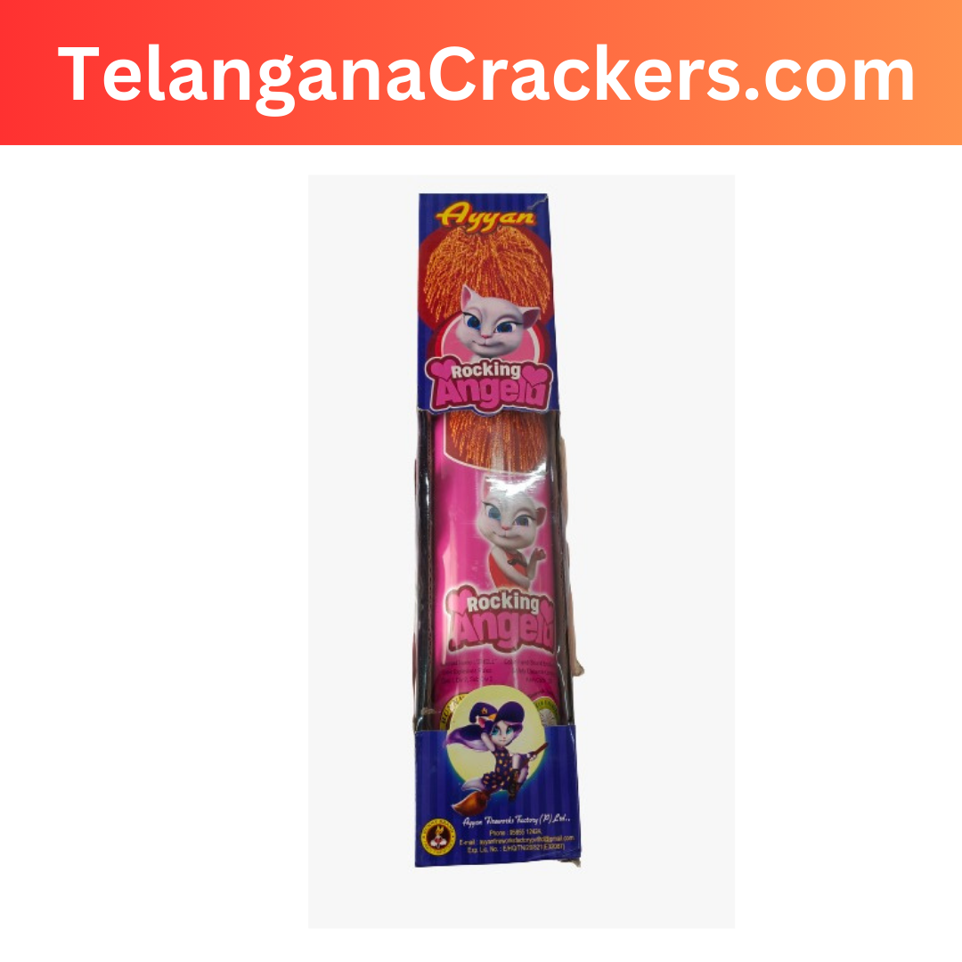Introducing the Rocking Angela 3 Inch Firework from Sivakasi Enterprises! This firework is sure to light up your Diwali celebrations with its vibrant colors and loud sound. It is a 3 inch cylindrical firework that produces a beautiful display of red, green, and yellow sparks. The Rocking Angela 3 Inch Firework is sure to be the highlight of your Diwali night! It is made with high-quality materials and is safe to use. Get ready for an amazing show with this firework from Sivakasi Enterprises! Order now and have it shipped directly from Sivakasi in Tamilnadu to Telangana.