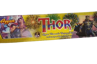 Introducing THOR from Ayyan Fireworks! This amazing firework is sure to light up your Diwali celebrations. With its vibrant colors and loud bangs, THOR will be the star of your show. It is a powerful firework that will fill the sky with a dazzling display of sparks and colors. The bright red, green, yellow, and blue stars will create an unforgettable experience for you and your guests. The loud bangs will make sure everyone knows you are celebrating in style! Get ready to be amazed by THOR from Ayyan Fireworks!
